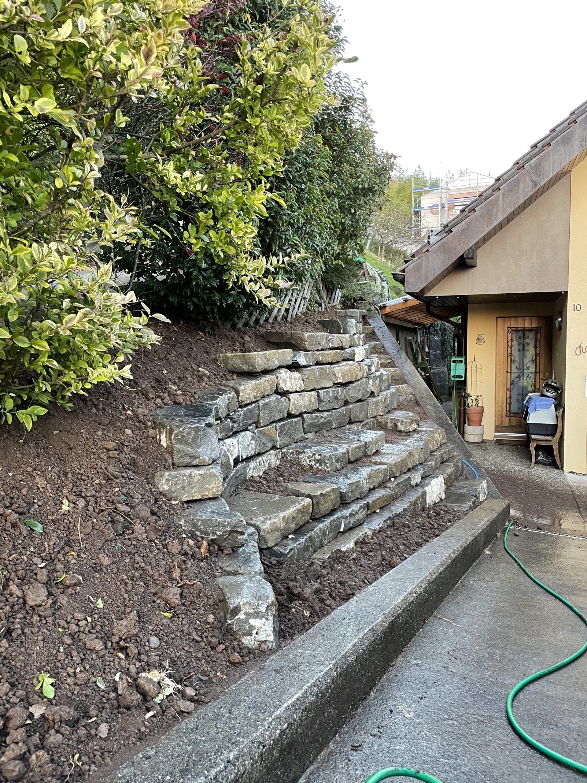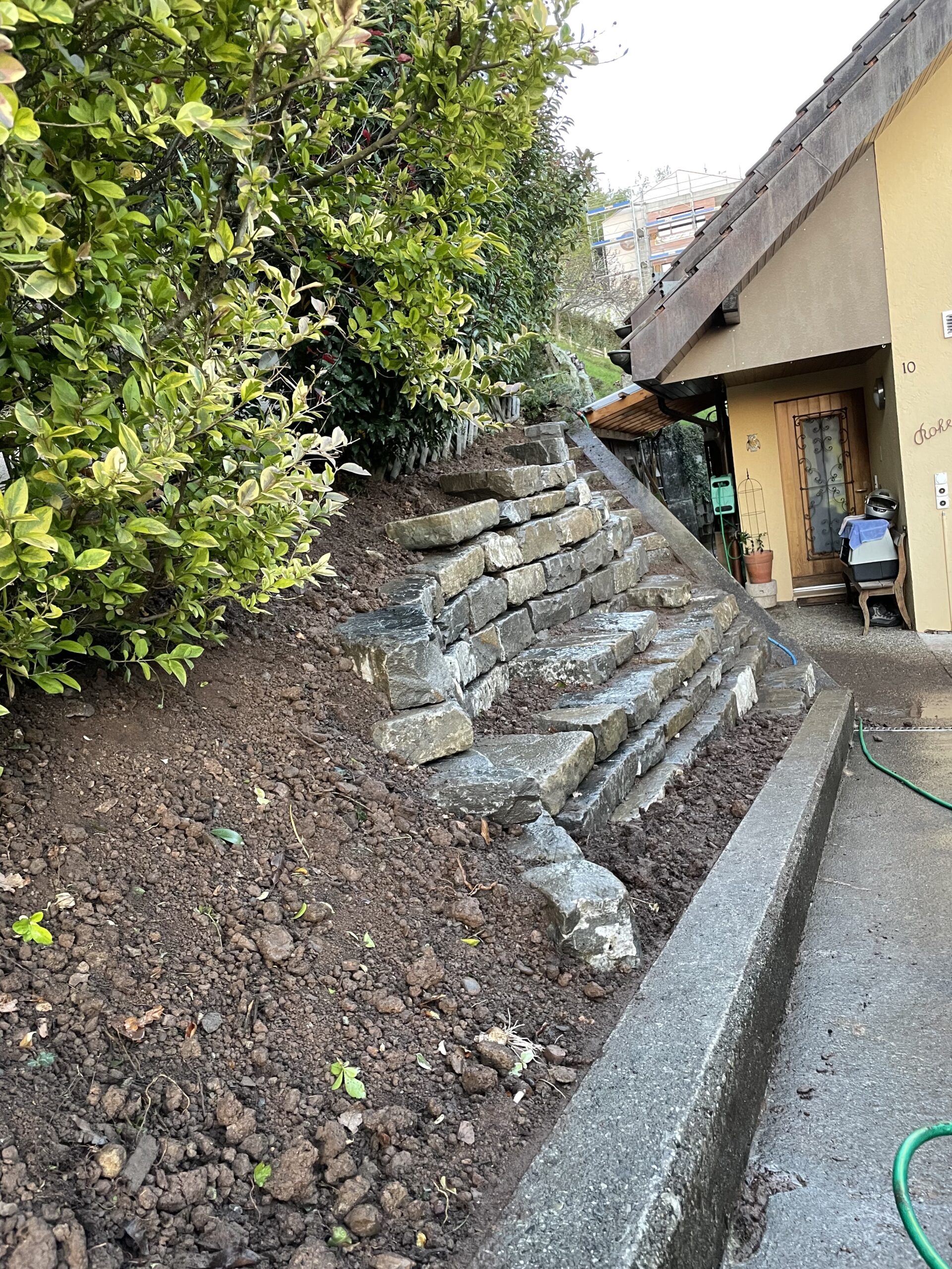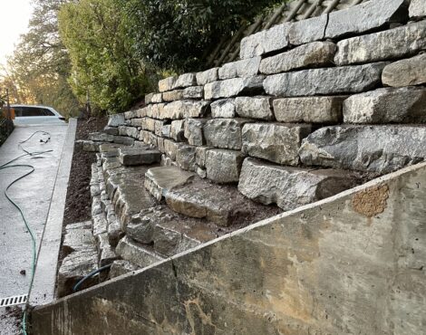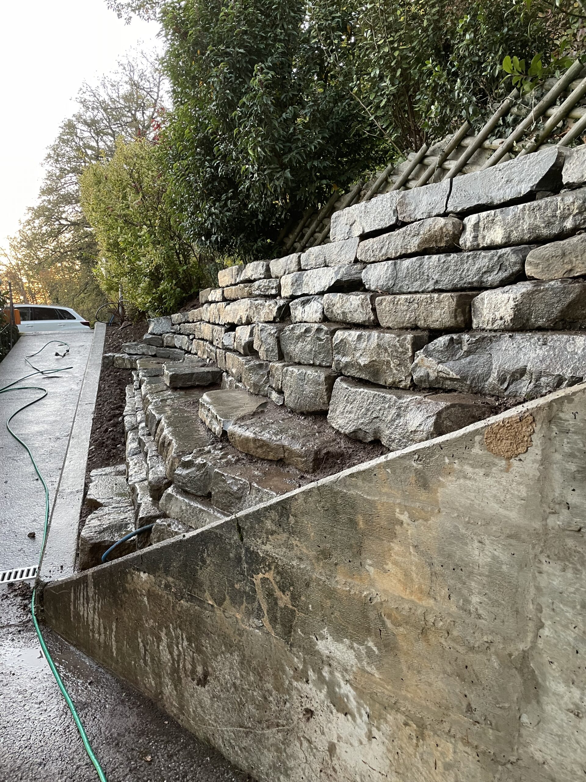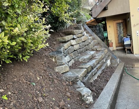 Ce projet concerne l’aménagement de l’entrée de cette villa située au Mont-Pèlerin, avec la réalisation d’un enrochement composé de plus de 9 tonnes de pierres de Tatüren.